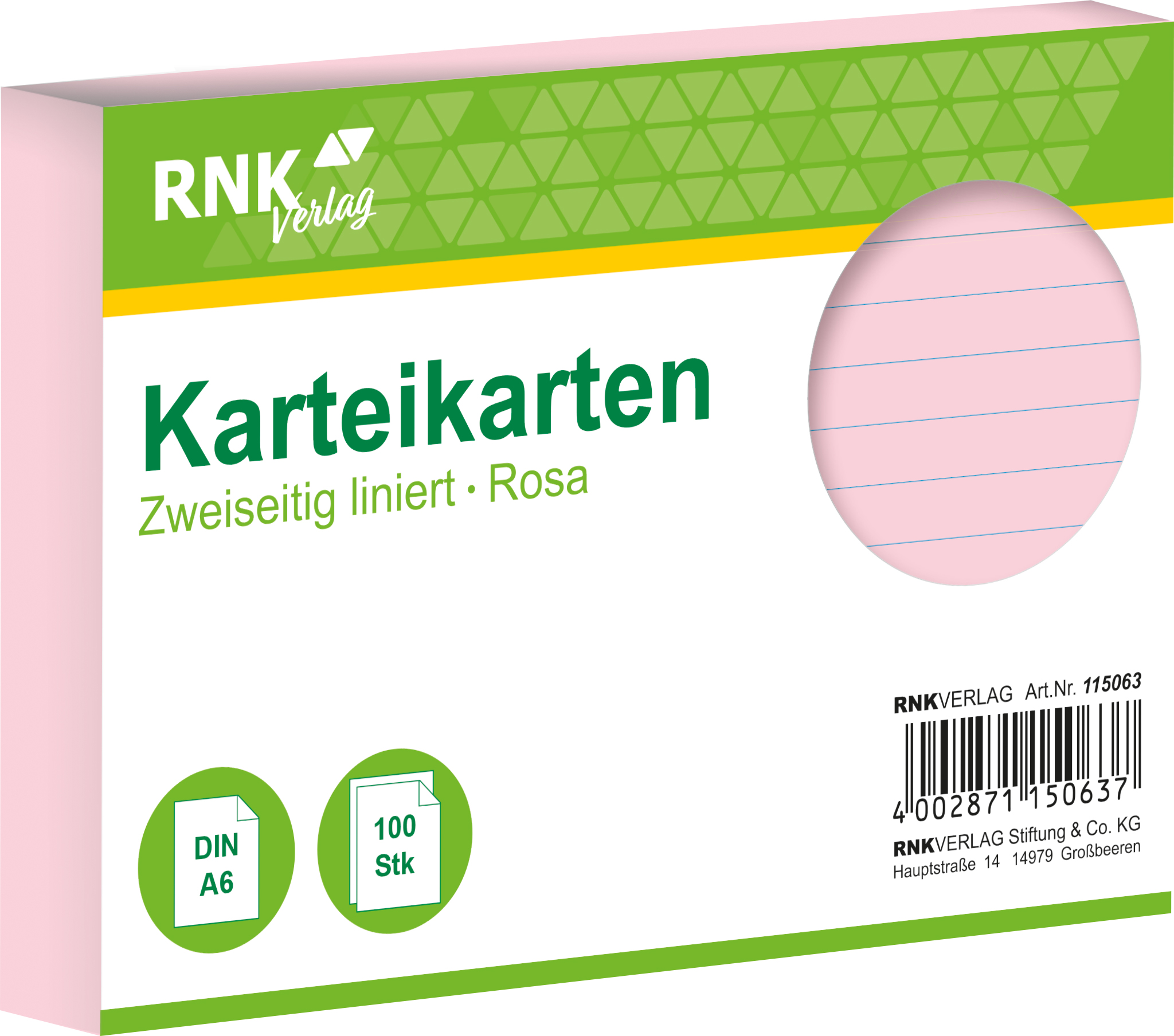 | Karteikarten Din A6 - 100 Stück Mehrzweckkarten - liniert - rosa |  |